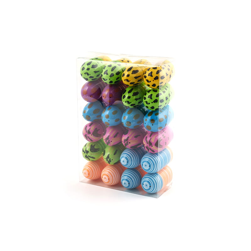 Te wielkanocne jaja są wykonane z wysokiej jakości przyjaznego dla środowiska materiału PP, bezpiecznego i nietoksycznego, mogą być używane bez żadnych zmartwień. Każde jajko można drukować z wszelkiego rodzaju pięknymi wzorami, takimi jak emotikony, paski i inne pożądane wzory, kolory są jasne i nie łatwe do zniknięcia. Piłka jest pełna i okrągła, z delikatnym handeelem, co sprawia, że ludzie ją kochają. Niezależnie od tego, czy jako dekoracje świąteczne czy prezenty, te jajka z nadrukiem wielkanocnym mogą dodać wyjątkową wakacyjną atmosferę i radość.